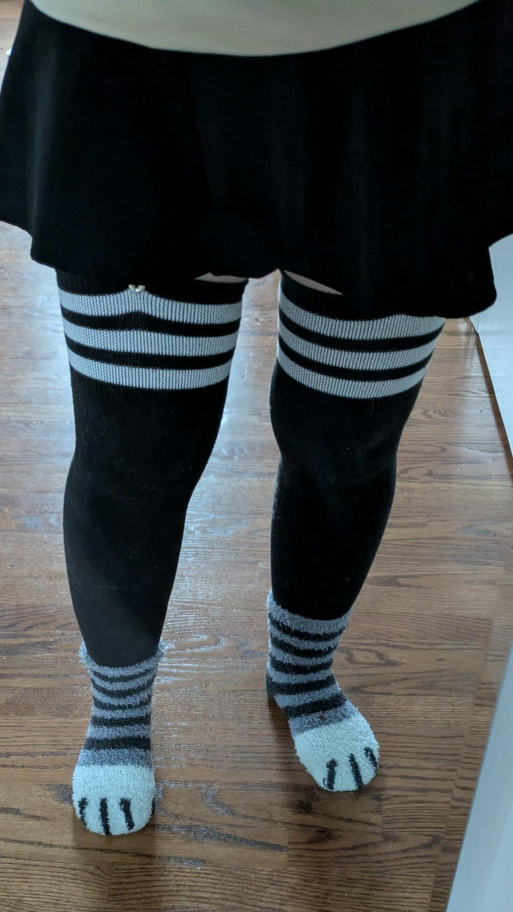 Our beloved Longer Extraordinary Thigh High Socks now come in a sporty top-striped version, which is sure to make you look up to 90% faster!