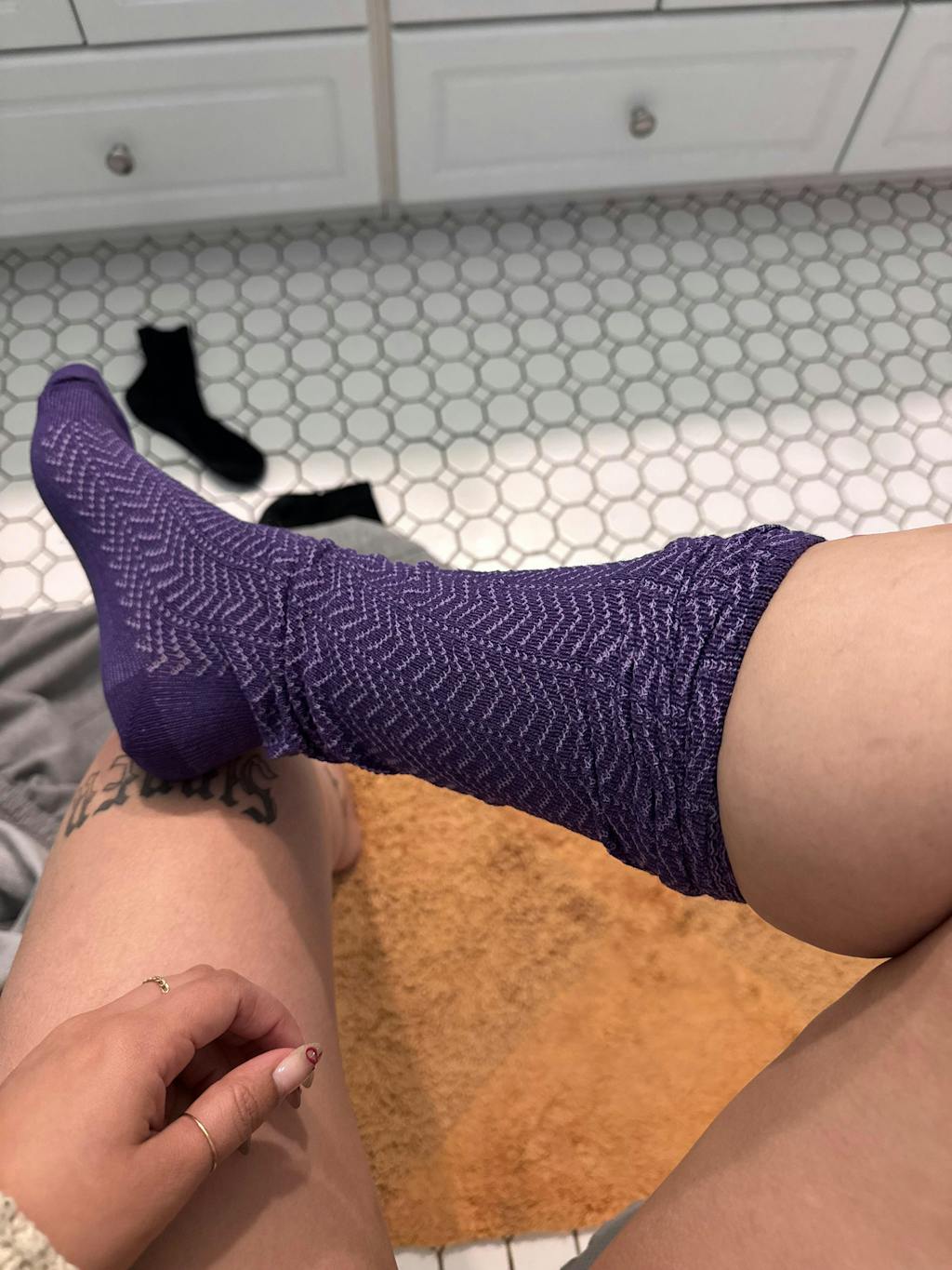 Stretch, around leg: 17 inches at cuff, 14 inches mid-sock