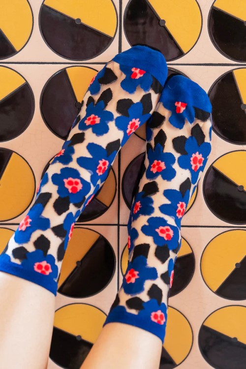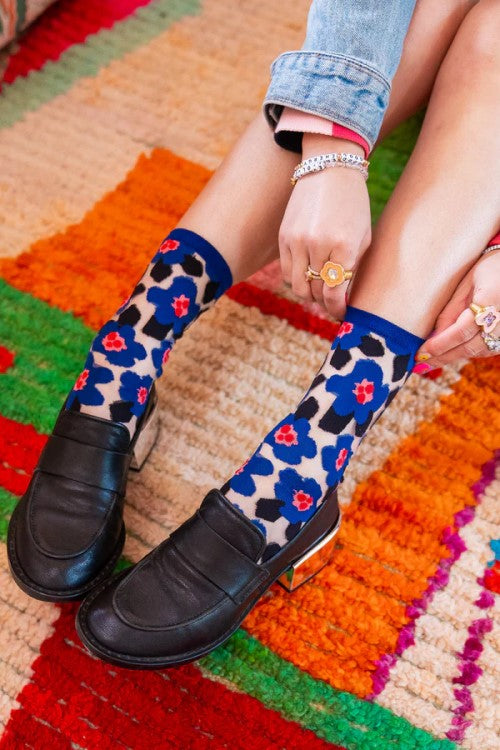 Bold Blue Floral Sheer Crew