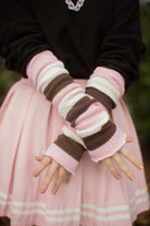 Stripes of strawberry, vanilla, and chocolate colored yarn make up these cozy, sweater-knit warmers, perfect for arms or legs! Add some flavor to your outfit! Made in the USA.