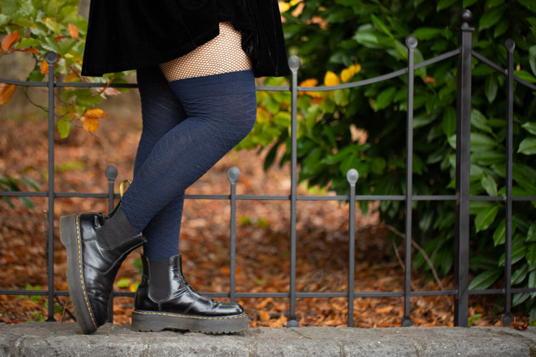 Inspired by the traditional Japanese Seigaiha Wave pattern, the rounded diamonds on these thigh high socks wash across your legs like the swells of the sea. Now in a longer, tube footed version that more people can wear!