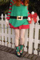 A sprig of mistletoe hangs from a tuxedo cat's tail as it peers back over its shoulder at you. This is it: your signal that you may kiss its royal posterior. If that's not quite the gift you were hoping for, some more conventional gifts appear on the feet of these silly holiday socks.