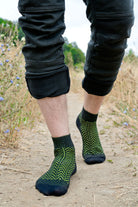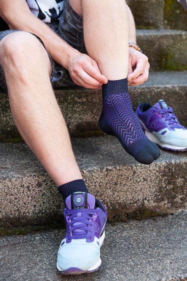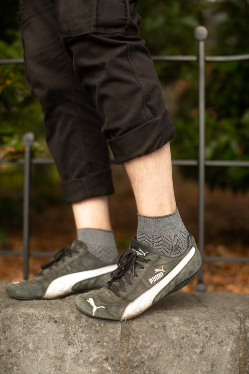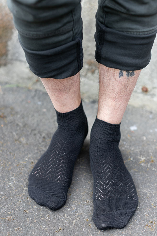 We love our Shorty Chevrons so much, we had to share them with our larger-footed friends! Solid cotton blend heels, toes and soles keep your step comfortable and well protected, while the openwork chevron patterned tops allow them to breathe in warm weather. Ribbed cuffs with roll tops mean these socks stay in place, without biting in to your leg. Made in the USA.