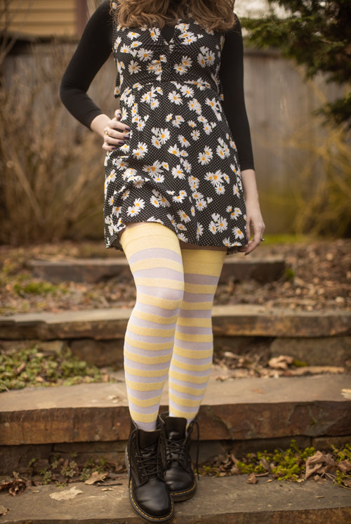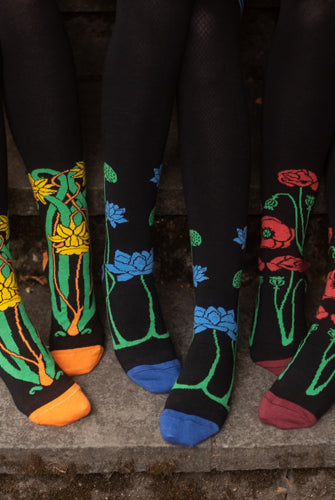 A more contemporary line of socks made specially for Sock Dreams in the USA. While our DreaM Stockings™ line features funky, vintage-style socks knitted on antique machines, Dreamer Socks™ boast finished cuffs and great stretch for dreamers of a wide variety of sizes. A newer addition to the Sock Dreams family, these styles have quickly risen to become some of our most popular socks, due mostly to their fantastic fit! Stretch-tested by our own staff to ensure their quality and fit are up to our standards before they are lovingly wrapped in a recycled cardstock sleeve, for minimal environmental impact.