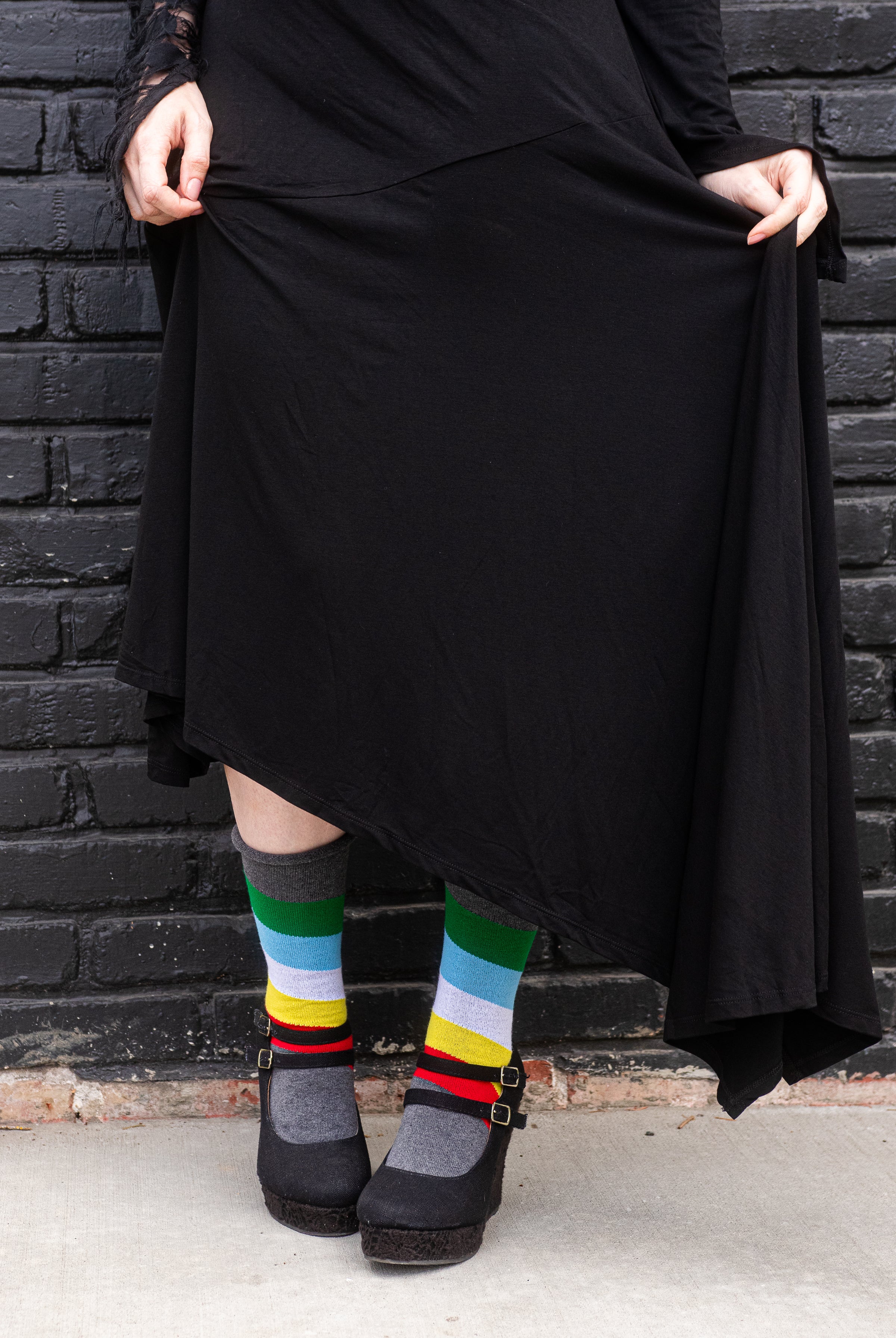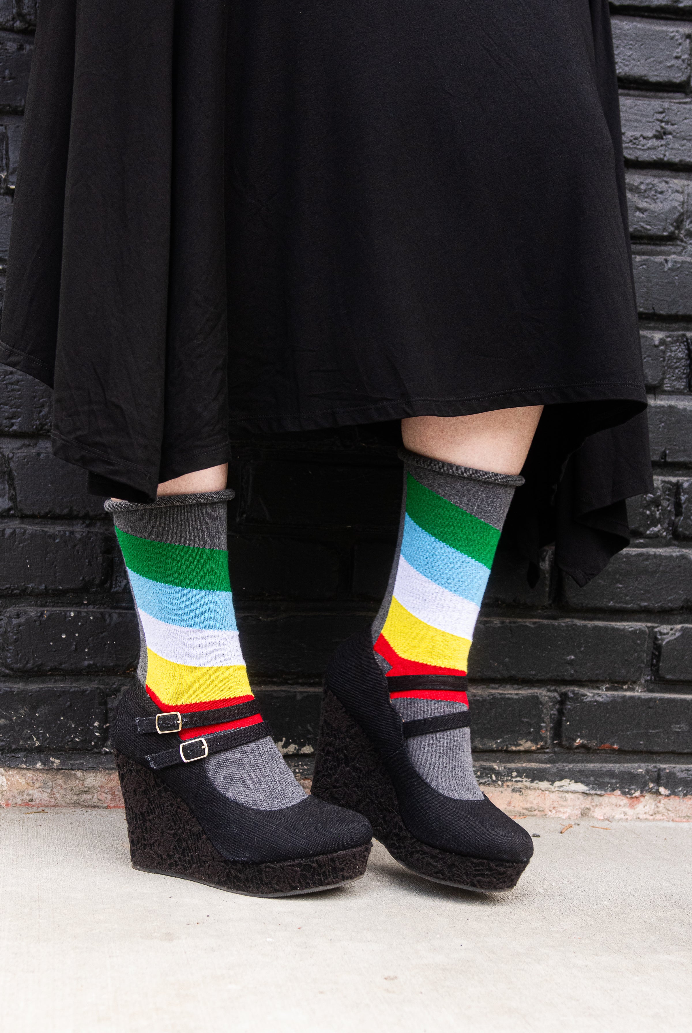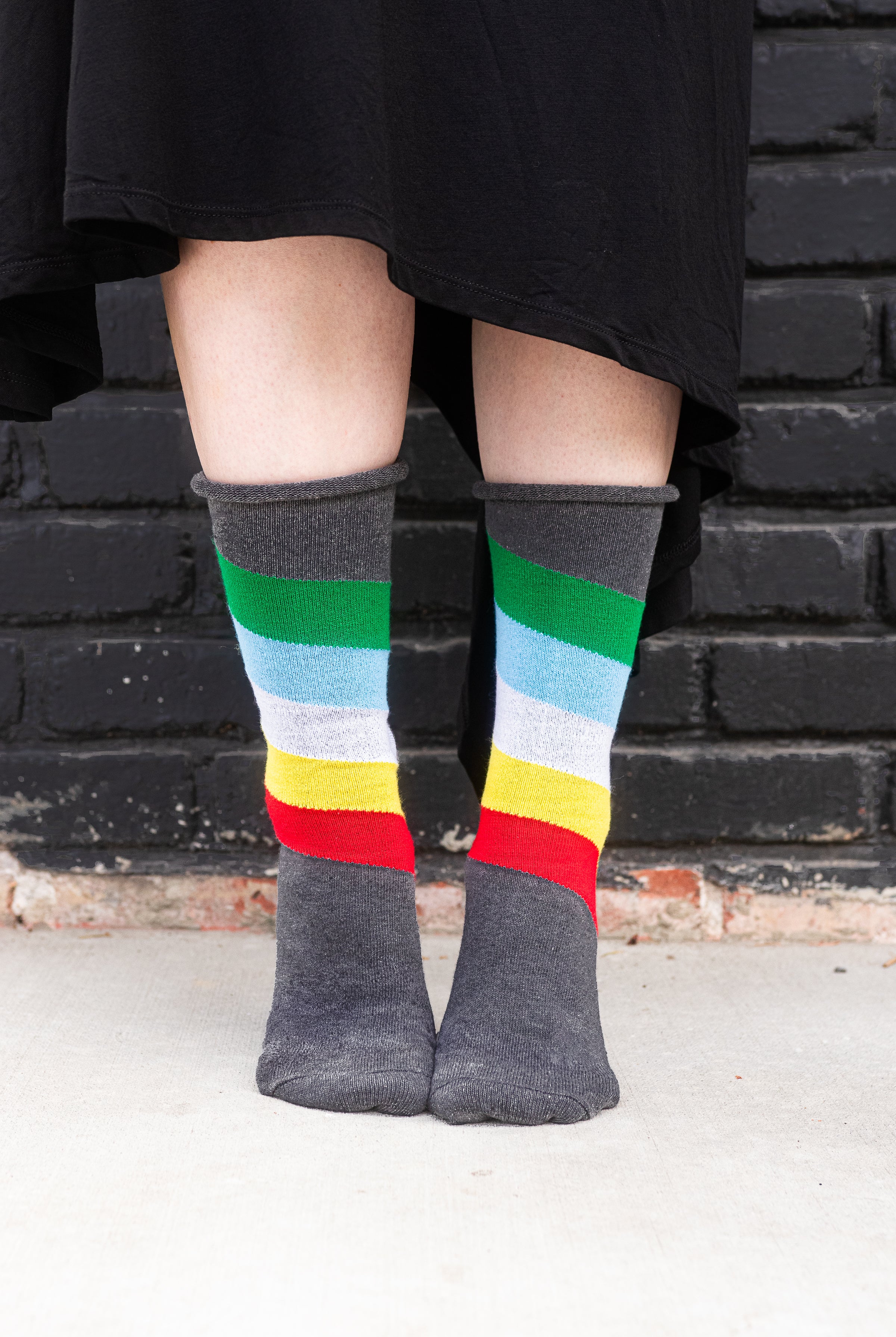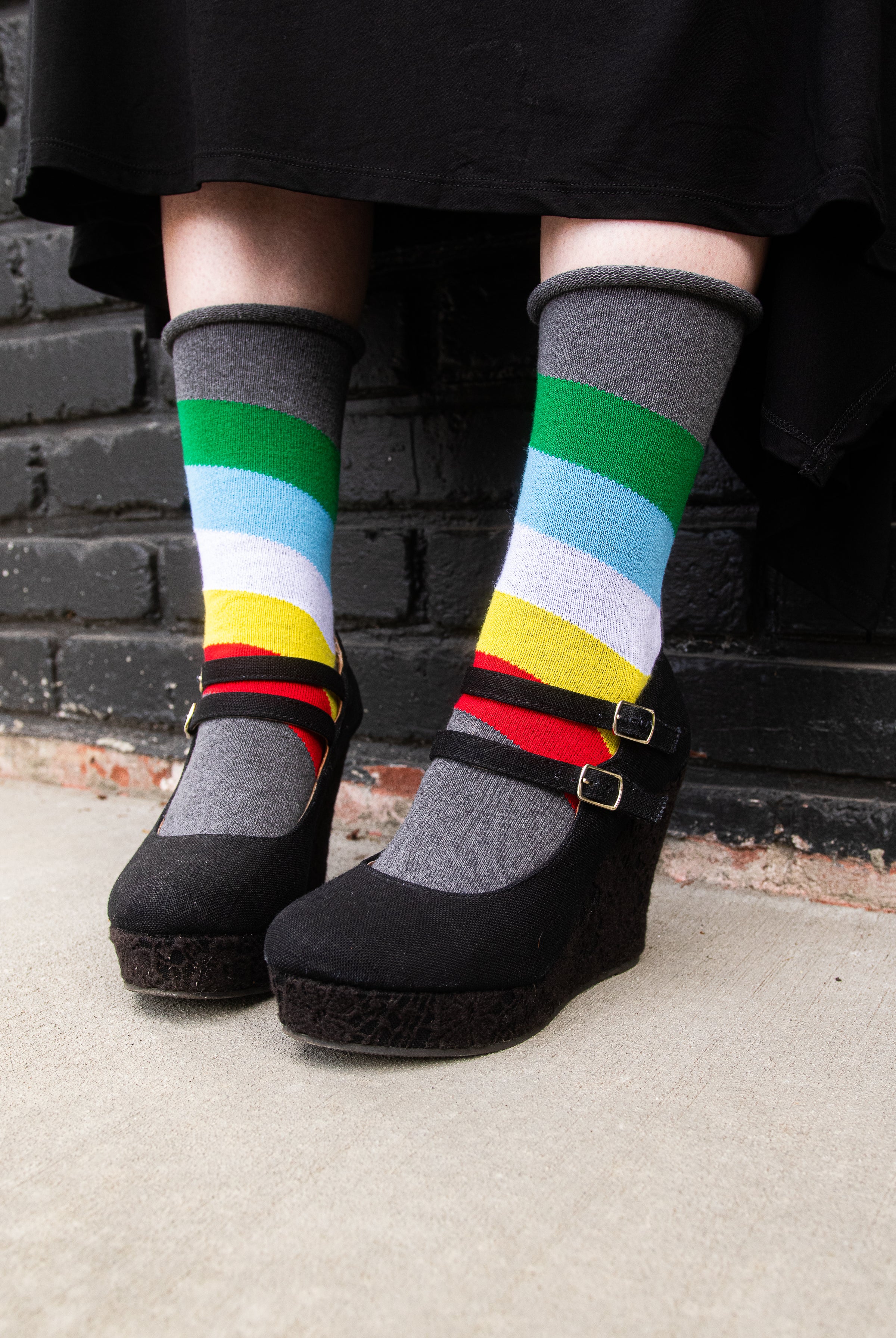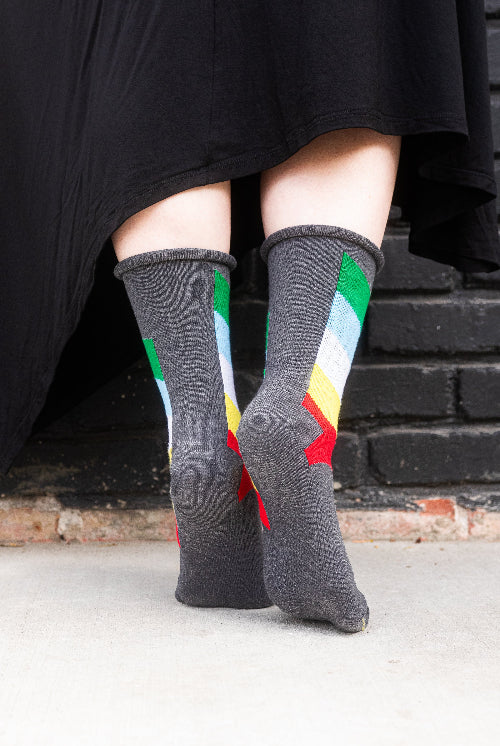A more contemporary line of socks made specially for Sock Dreams in the USA. While our DreaM Stockings™ line features funky, vintage-style socks knitted on antique machines, Dreamer Socks™ boast finished cuffs and great stretch for dreamers of a wide variety of sizes. A newer addition to the Sock Dreams family, these styles have quickly risen to become some of our most popular socks, due mostly to their fantastic fit! Stretch-tested by our own staff to ensure their quality and fit are up to our standards before they are lovingly wrapped in a recycled cardstock sleeve, for minimal environmental impact.