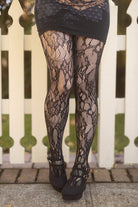 Twining floral vines wind their way around the legs of these striking tights amid a patchwork of varying gauges of net!