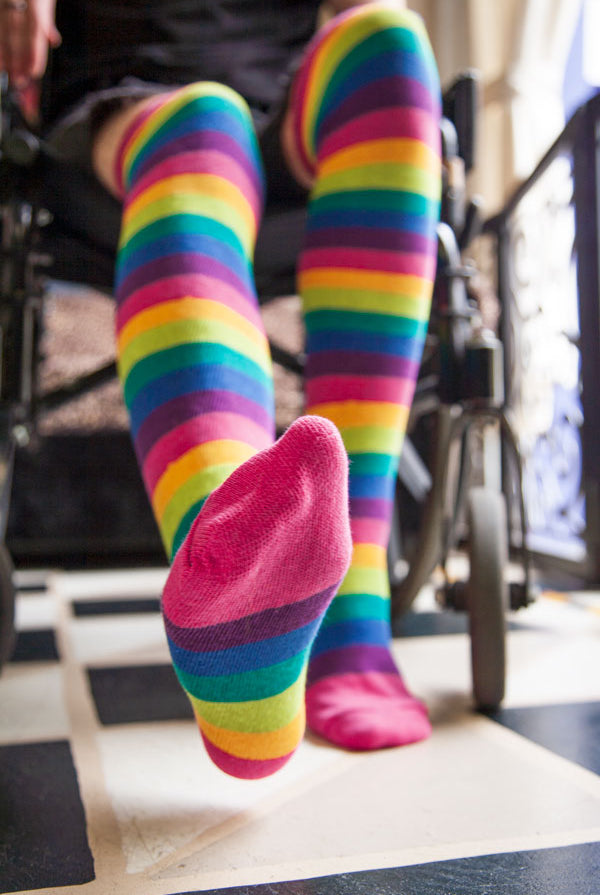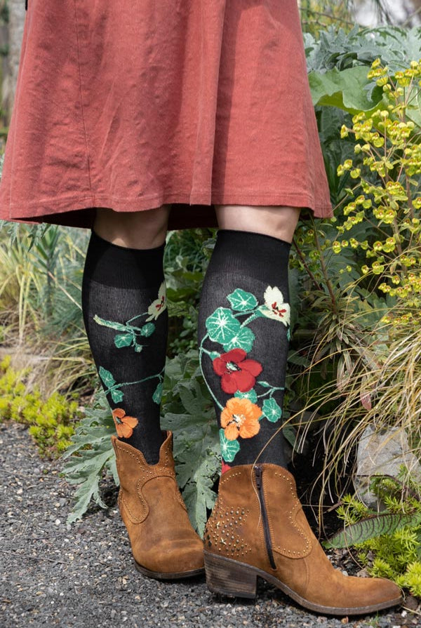 Reaching to, or just under, your knees, some knee socks land over the knees on smaller legs, while other knee high socks make great midcalves on curvier calves and longer legs (though if you want plus size knee highs, we got 'em).