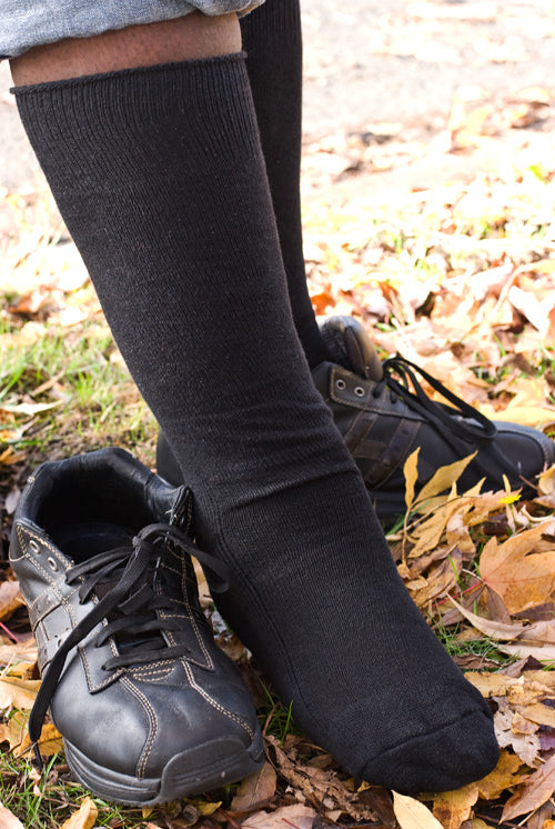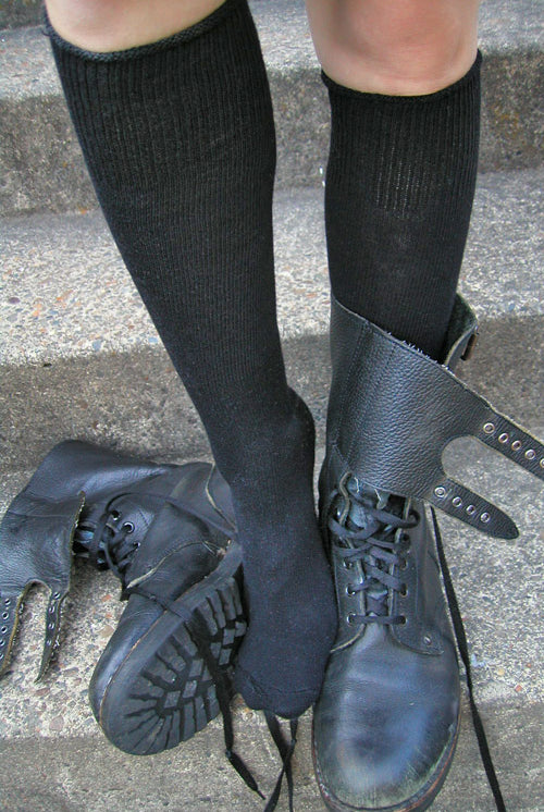 Larger footed folks used to men's sock styles can also find "over the calf" styles here, OTC socks are just slightly shorter knee high socks!
