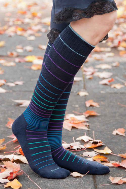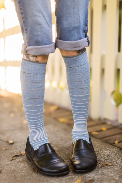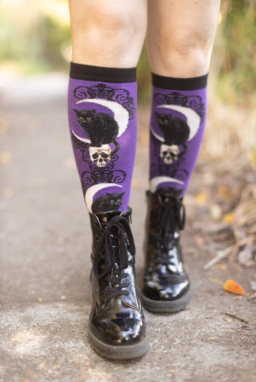 Reaching to, or just under, your knees, some knee socks land over the knees on smaller legs, while other knee high socks make great midcalves on curvier calves and longer legs (though if you want plus size knee highs, we got 'em).