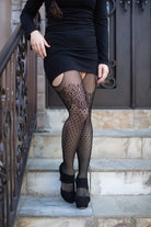 Convenient cut outs in the front, back, and sides of the panty area make these into a hybrid tights/thigh high with garter belt style, and add to the fun of layering!