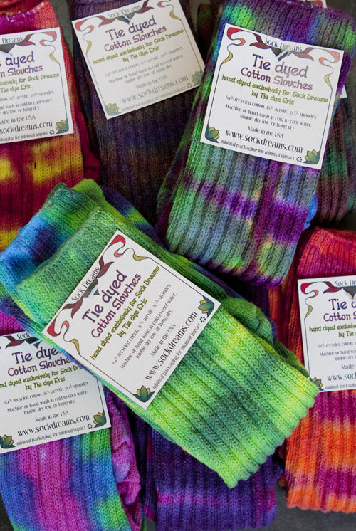 Custom-made for Sock Dreams by Portland's own Tie Dye Eric. These are the real deal and will stand the test of time, thanks to Eric's professional dying methods. Items will come and go from this section as availability changes, and each one will be unique, created by hand with love and precision.