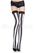 The black and neon orange vertical stripes of these stockings are sure to turn heads, while lending any outfit some Halloween flare!