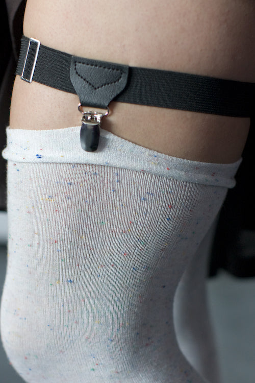 Extra Long Faux Leather Sock Garters with Suspender Clips