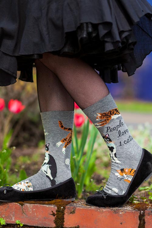 Blue Q knows that once you've adopted a cat, you never go back (to wanting to deal with humans), so they've knitted it loud and clear on a grey sock festooned with felines. A cat sock for the true cat lover.