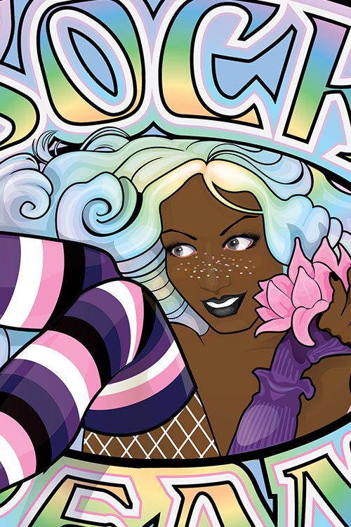 Our logo lady is all dressed up in our Extraordinary Pride Thigh Highs in the genderfluid colorway! Made in the USA!
