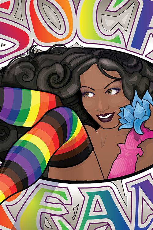 Show your Sock Dreams pride! These stickers are small enough to fit on many phone cases, but large enough to catch the eye on your car bumper. Our sticker proudly wears Proud Stripes thigh highs in Philly Rainbow. Made in the USA.