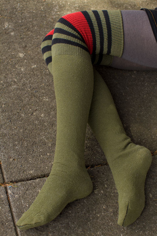 Uniquely dreamy tube socks with ribbed, striped cuffs and thick, absorbent terry. We love them as over the knee socks, or doubled over for knee highs. Made in the USA.