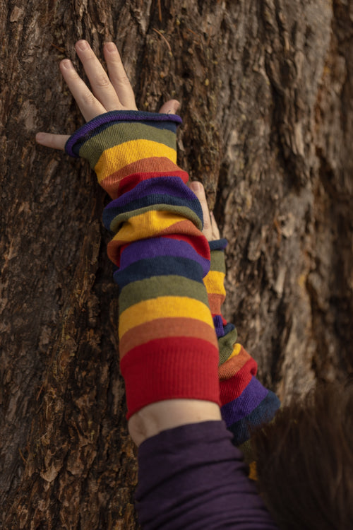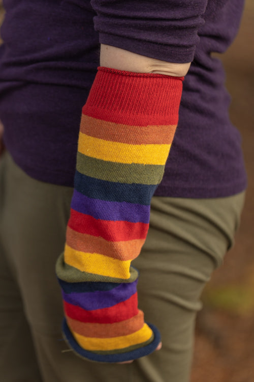 Short, sweet, and stripy sleeves! Why should your legs have all the fun? Dress up your arms with some of our favorite Dream Stocking combinations! Great on their own or layered, slouched or smooth. Even though they're arm warmers, some folks like these on their legs, too! Made in the USA.