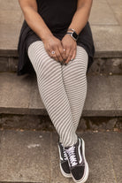 Cream colored wool yarn contrasts with black elastic as the two spiral up the legs of these thigh high socks, creating a super fun pattern and texture!