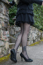 The delicate diamond back seam isn't the only twist on tradition these fishnet stockings have to offer. Their wide lace cuffs hide grippy silicone strips so your fishnets don't fall!