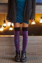 Stretch out in a colorful garden of tie dye blooms! Realizing we could pair together a righteous riot of tie dyed color with the swirling springtime of our Flowering Vine knee socks was better than every bouquet we've ever received put together. Knit and dyed in the USA.