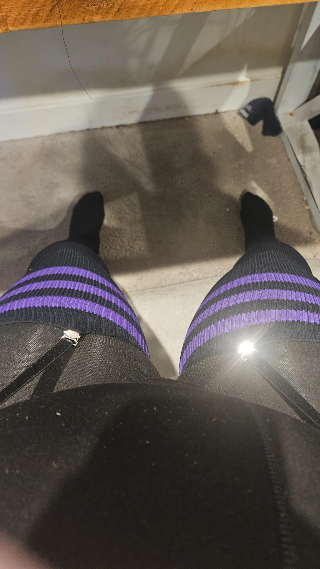 Just like our best-selling Americana Thigh Highs, but in a more manageable length for those with shorter inseams (or who just don't want their thigh highs super-long). Stretchy thigh high socks with sporty top stripes, available in delightfully dark colorways! Made with nylon, these are perfect for all your athletic pursuits, such as visiting the goth club! These run about 4 inches shorter than their longer counterpart. Made in the USA for Sock Dreams.