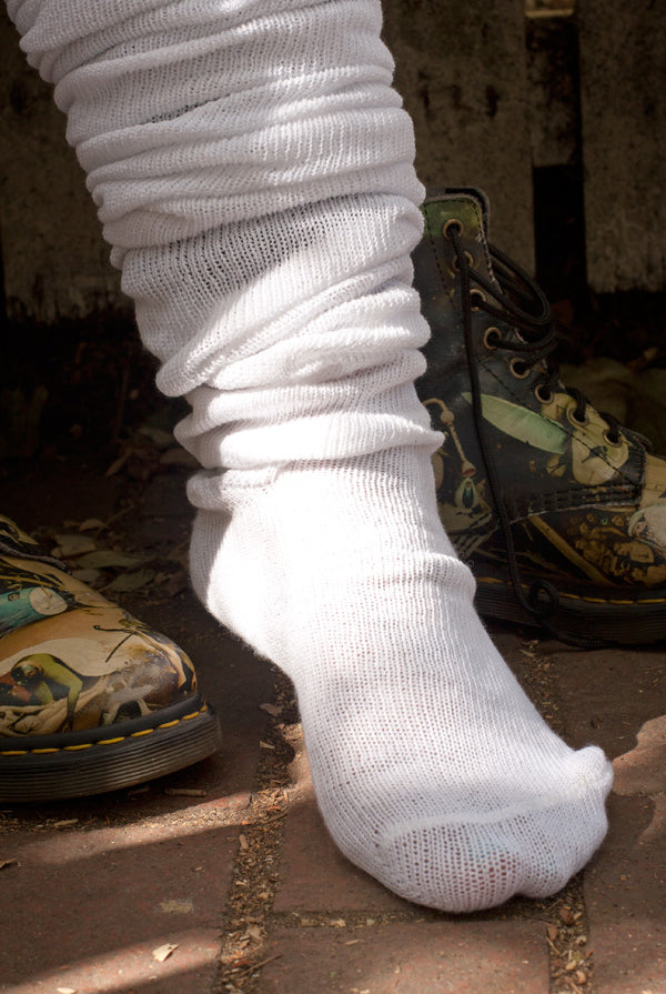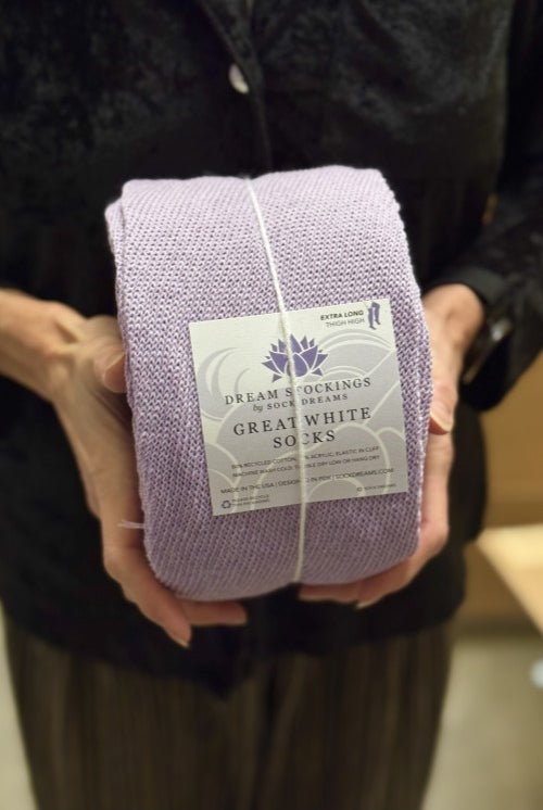 Coming well past your knees, thigh high socks and stockings are super comfy and often just as sexy. Sick of socks not stretching? Our own line of Extraordinary thigh high socks offers better stretch than any other made in the USA tall socks we've seen! And, if you're stumped on what stocking is right for you, drop us a line and we'll help.
