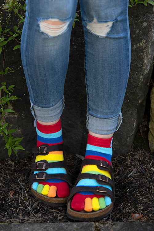 Toe socks hug each toe individually, giving you superior comfort and balance without adding extra bulk to your shoes. Available in as many fun styles as regular old socks, you don't have to compromise style for superior fun and comfort! Plus, since most toe socks don't have toe seams, some of the best sports socks are toe socks!