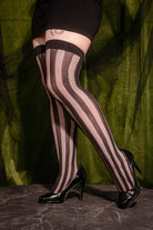 Vertical Net & Opaque Striped Net Thigh High