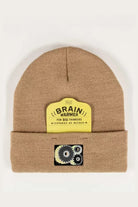 Stay cozy this winter with our lovely soft beige beanie hat! It features an adorable embroidered tag of gears on the rim, letting everyone see that your mind is always in gear.