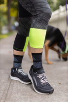 Thin lines curve and criss-cross against a black background on these chic yet sporty socks!