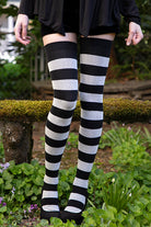 Wide striped thigh high socks that fit beautifully on legs of all sizes, from short and slender to tall and curvy. These are exclusive to Sock Dreams and made in the USA!