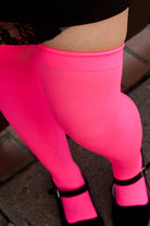 Semi-opaque solid nylon, for when you want a bit more coverage from your stockings. Basic black and white are bolstered by glorious neons, because neon nylons can't be beat.