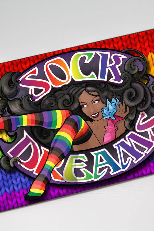 Maybe it's for a special day or you're shopping for someone else but not sure what size to get - the Sock Dreams Gift Card is the perfect choice! In this version our mascot sports our Philly Rainbow Thigh Highs, inspired by Philadelphia's redesigned Pride flag!