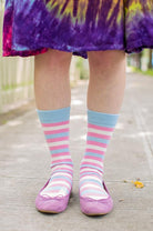 Here by special request, it's a shorter, softer version of our Pride Stripes Knee High Socks! While these colorways represent the same Pride flags as their neon counterparts, they do it in a more muted, pastel kind of way, which in some cases is actually closer to the original flag design. In other cases, it's just a fun spin on the standard, because our fashion preferences are as diverse as our identities! Now in soft, regenerated cotton blend yarns.