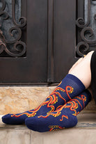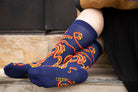 An orange octopus occupies the fronts of these navy blue crew socks as its tentacles sprawl down onto the feet and around the legs, twining into graceful arabesques. Featuring the soft cotton yarn and impressive detail we associate with Ozone, these aren't your average novelty socks!
