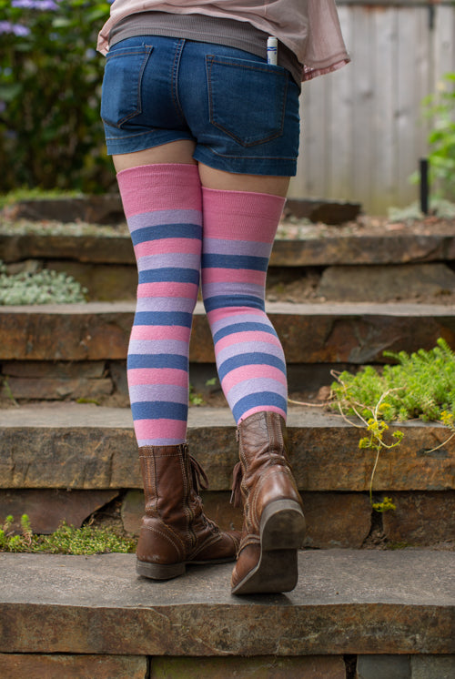 Longer Cotton Top-Striped Extraordinary Thigh High